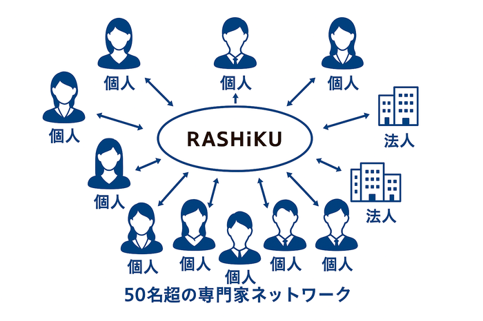 RASHiKUでは、専門性を持つ法人や個人事業主と戦略的に連携し、